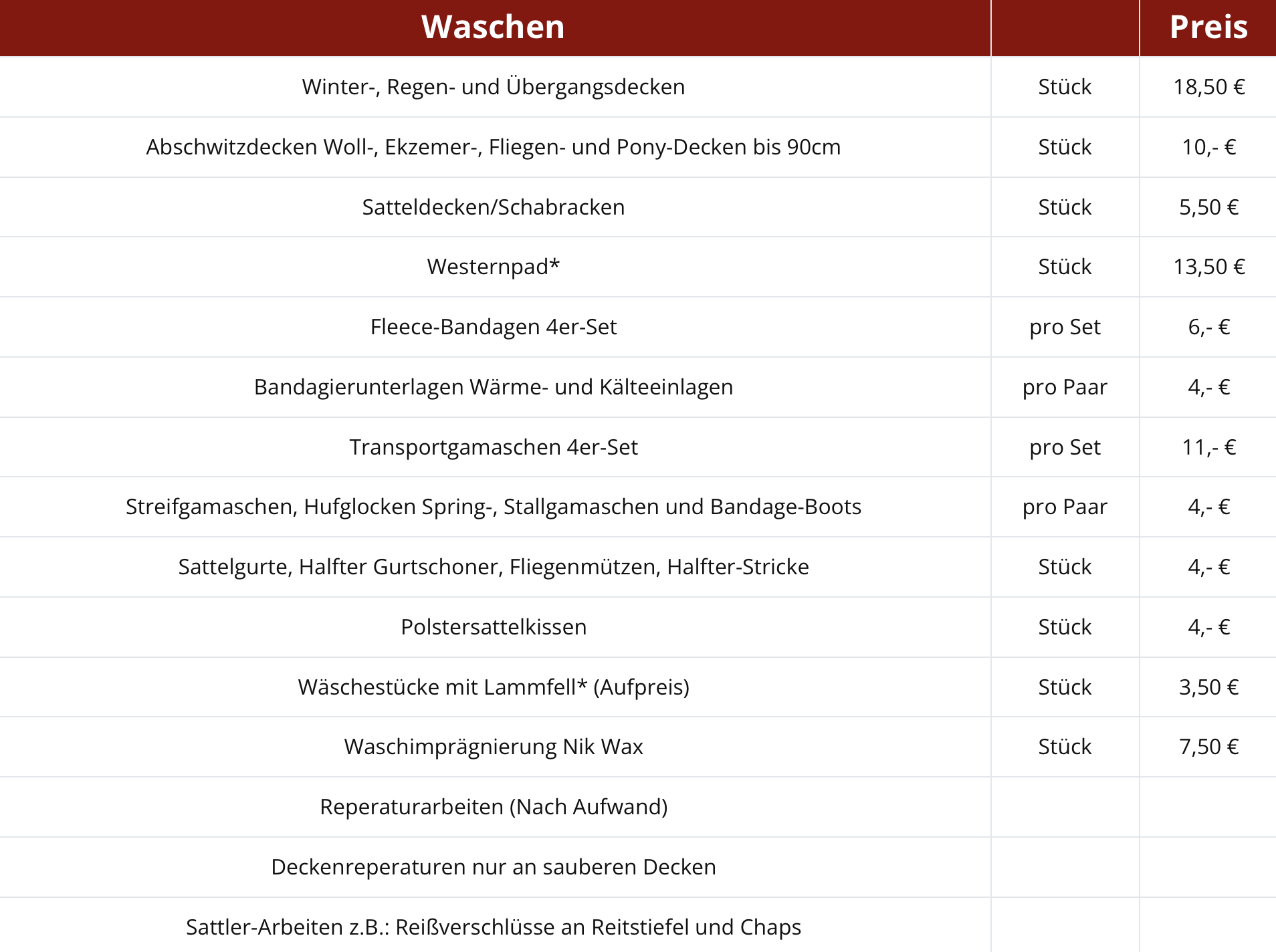 Gerne übernehmen wir auch das Waschen deiner Pferdedecken oder Schabracken.